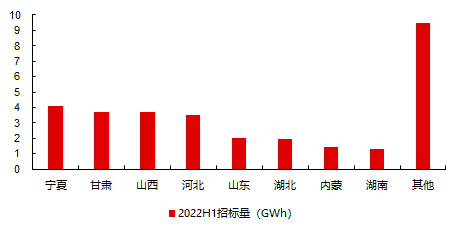 3)索比儲能網(wǎng)統(tǒng)計,國內(nèi)2022H1電化學(xué)儲能項(xiàng)目招標(biāo)達(dá)14.2GW/31.2GWh(單6月達(dá)到2.2GW/4.5GWh;2021年國內(nèi)裝機(jī)2.4GW/5GWh左右),尤其是寧夏、甘肅、山西、河北、山東的招標(biāo)規(guī)模領(lǐng)先;隨著國內(nèi)可再生能源的快速發(fā)展,儲能調(diào)節(jié)已經(jīng)具備必要性,三北、山東、山西等地為國內(nèi)大型儲能先行示范,若未來一年內(nèi)“容量電價機(jī)制、輸配電價核算”的政策落地,國內(nèi)大型儲能爆發(fā)在即。