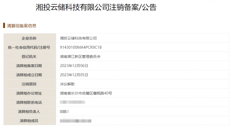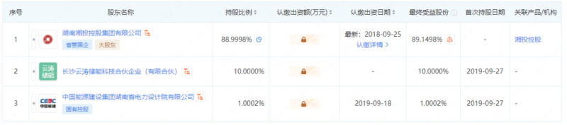 據公開信息,湘投云儲的三家股東中,湘投集團為控股股東,長沙云濤儲能科技合伙企業對外投資僅湘投云儲一家公司。