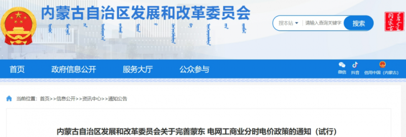 內蒙古自治區發改委關于完善蒙東電網工商業分時電價