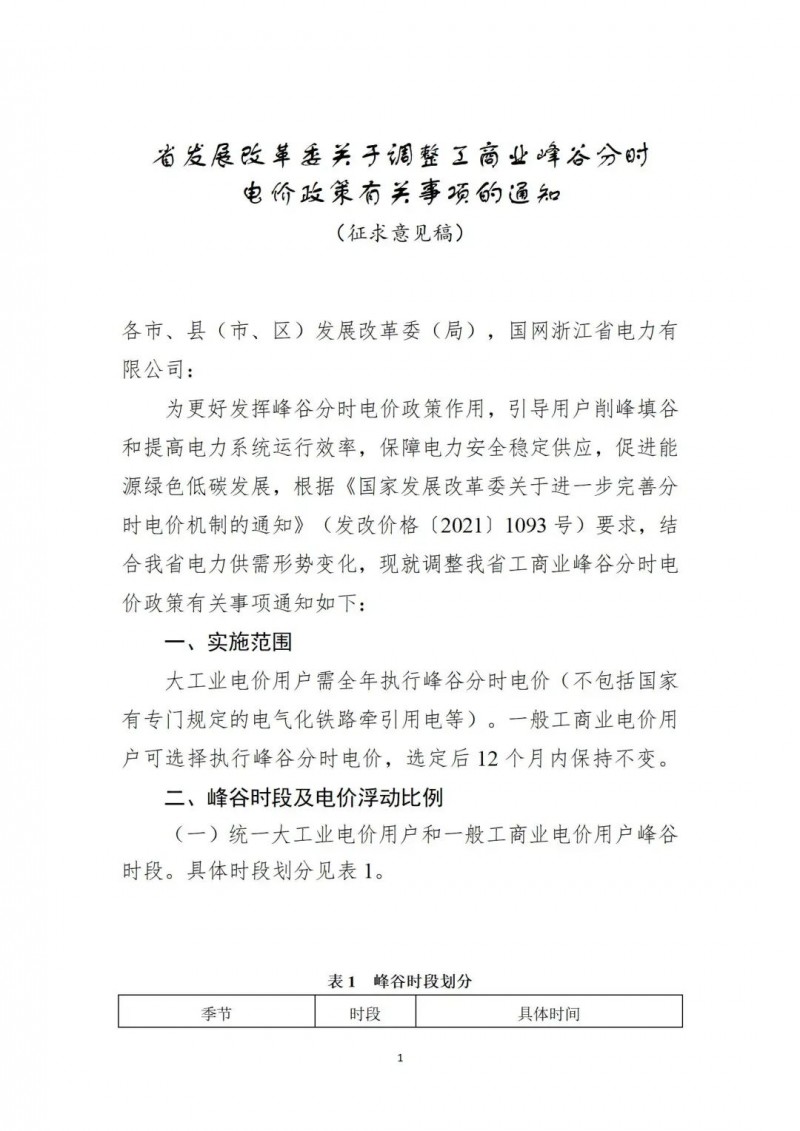 1.關于調整工商業峰谷分時電價政策有關事項的通知(征求意見稿)