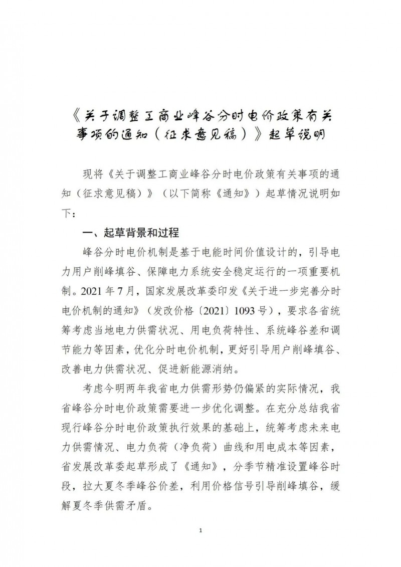 2.《關于調整工商業峰谷分時電價政策有關事項的通知(征求意見稿)》起草說明