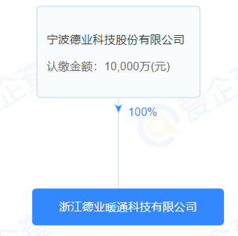 近日,浙江德業暖通科技有限公司成立,法定代表人為張天竺,注冊資本1億元,經營范圍包含:儲能技術服務;太陽能發電技術服務;電池制造;新能源原動設備制造等,該公司由德業股份100%控股。