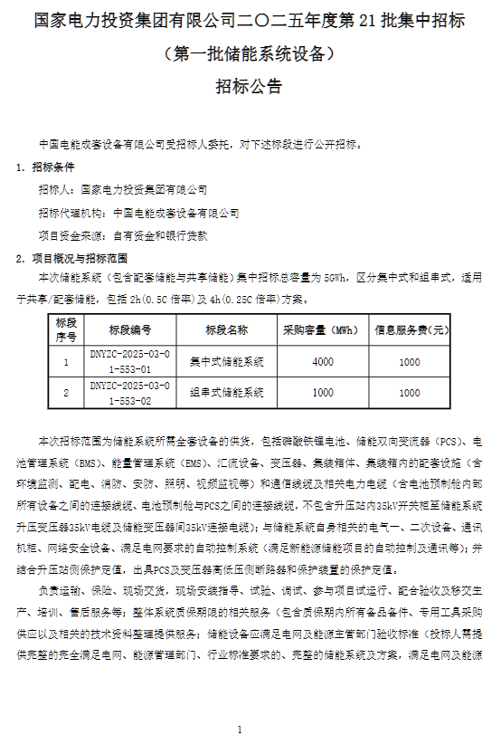 本次儲能系統(tǒng)(包含配套儲能與共享儲能)集中招標總容量為 5GWh,區(qū)分集中式和組串式,適用于共享/配套儲能,包括 2h(0.5C倍率)及 4h(0.25C倍率)方案。