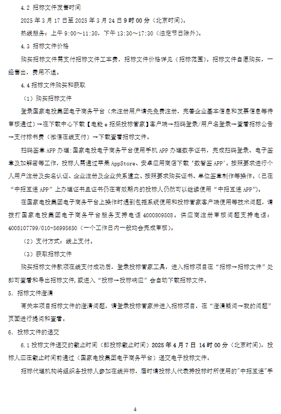 招標文件發(fā)售時間:2025年 3月 17日至 2025年 3月 24日 9時 00分(北京時間)。熱線服務:上午 9:00~11:30,下午 13:30~17:30(法定節(jié)日除外)。