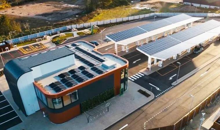 英國光儲充一體化項目,系統(tǒng)配置1.75MW光伏系統(tǒng)、5MW/5MWh儲能系統(tǒng)和7kW-350kW充電樁,通過光伏和儲能聯(lián)合出力,可同時滿足36輛電動汽車現(xiàn)場充電。