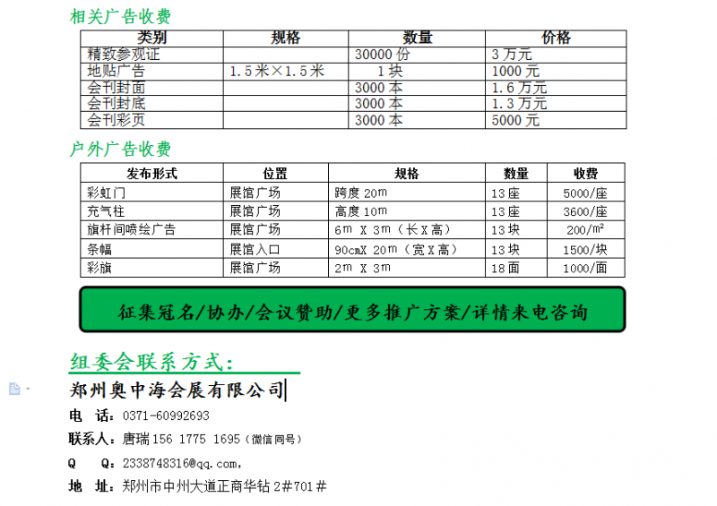 大會(huì)組委會(huì)采用地毯式推廣方式,將組織近百人邀約團(tuán)隊(duì),印刷十萬(wàn)份邀請(qǐng)函和請(qǐng)柬,在全國(guó)各大能源、環(huán)保生產(chǎn)基地、專(zhuān)業(yè)市場(chǎng)、展會(huì)現(xiàn)場(chǎng),下游經(jīng)銷(xiāo)商、代理商、采購(gòu)商、環(huán)保單位、工程公司、科學(xué)院校等進(jìn)行針對(duì)性推廣邀約。并聯(lián)合專(zhuān)業(yè)網(wǎng)站、雜志、互聯(lián)網(wǎng)、河南電視臺(tái)新農(nóng)村頻道、鄭州都市交通廣播等100余家合作媒體進(jìn)行推廣報(bào)道,切實(shí)保障參展商利益和參展效果。