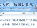 經(jīng)國(guó)務(wù)院批準(zhǔn),國(guó)務(wù)院關(guān)稅稅則委員會(huì)決定對(duì)原產(chǎn)于美國(guó)的部分進(jìn)口商品中止關(guān)稅減讓義務(wù),自2018年4月2日起實(shí)施。