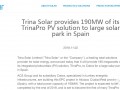 根據天合光能英文官網11月3日發布的消息,天合光能將為西班牙一大型光伏園區提供190MW的“TrinaPro”智能光伏解決方案。