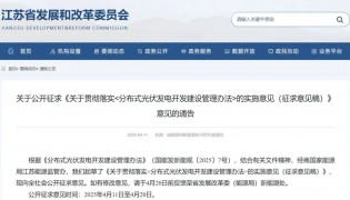 4月11日,江蘇發改委公開征求《關于貫徹落實<分布式光伏發電開發建設管理辦法>的實施意見(征求意見稿)》。