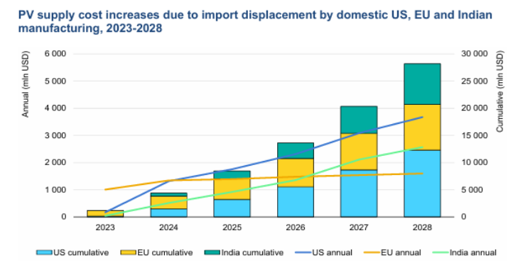 雖然光伏供應(yīng)鏈多樣化對于減少某些地區(qū)的過度集中是必要的措施,但這也給政府和消費者帶來了額外的成本。