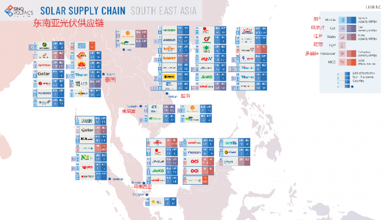 目前,中國企業在泰國的組件產能約為10GW,占泰國總產能的70%以上,涵蓋天合、晶科、正泰、阿特斯、東方日升、隆基等廠商,而泰國本土光伏產能則相對有限。