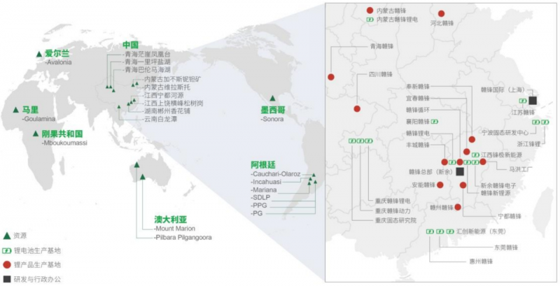 生產基地、研發中心、鋰資源分布