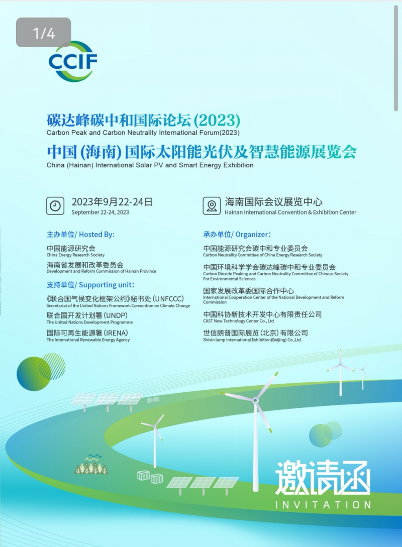 為加快海南清潔能源島建設(shè),促進(jìn)風(fēng)能、太陽能、智慧能源等清潔能源領(lǐng)域的國際交流與合作,推動(dòng)海上風(fēng)電、光伏發(fā)電、智慧能源等清潔能源產(chǎn)業(yè)的發(fā)展,由中國能源研究會(huì)、海南省發(fā)展和改革委員會(huì)共同主辦的“碳達(dá)峰碳中和國際論壇(2023)、2023中國(海南)國際太陽能光伏及智慧能源展覽會(huì)”將于2023年9月22日-24日在海南國際會(huì)議展覽中心召開。集中展示全球風(fēng)能、太陽能與、布式能源等清潔能源領(lǐng)域的新技術(shù)、新產(chǎn)品、新工藝和最新解決方案,大會(huì)同期召開國際碳達(dá)峰碳中和技術(shù)博覽會(huì)。