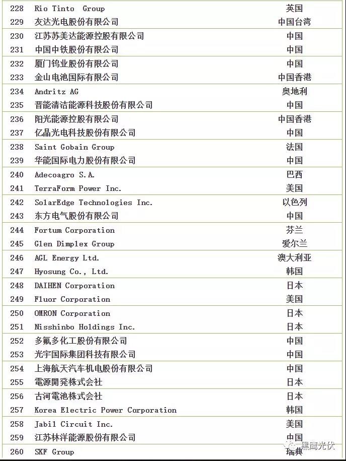 其中,中國企業(yè)占據(jù)217家,比去年增加19家。中國入選企業(yè)數(shù)依舊占據(jù)絕對優(yōu)勢,遠多于排名第二的美國(61家)和排名第三的日本(58家)。此外,德國入選企業(yè)34家,韓國23家,法國11家,芬蘭、巴西各9家,印度和西班牙各8家。