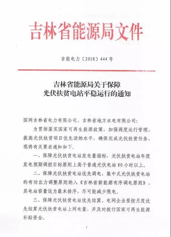 核心提示:12月18日,吉林省能源局發布《關于保障光伏扶貧電站平穩運行的通知》,《通知》指出,保障光伏扶貧電站發電量指標,年度發電預期調控目標原則上高于普通光伏電站80小時以上,保障光伏扶貧電站優先調電和結算。