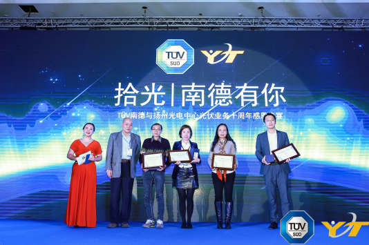 2018年12月20日,由全球著名認證檢測機構TÜV南德意志集團和國家級光電產品檢測重點實驗室揚州光電產品檢測中心主辦的“ 拾光|南德有你 ” 活動在江蘇揚州舉行。同期,“光伏產品質量技術專題研討會”和“光伏業務成立十周年感恩晚宴”也隆重舉辦。作為全球領先的光伏發電企業,東方日升質量及全球客戶服務部總監胡宇慧與質量主管楊淑波應邀出席,并分別斬獲“光伏質量突出貢獻人”、“光伏質量紅人”兩項大獎,這表明國家和權威機構對東方日升在質量上的不斷攻克與取得的突出成果給予了認可。