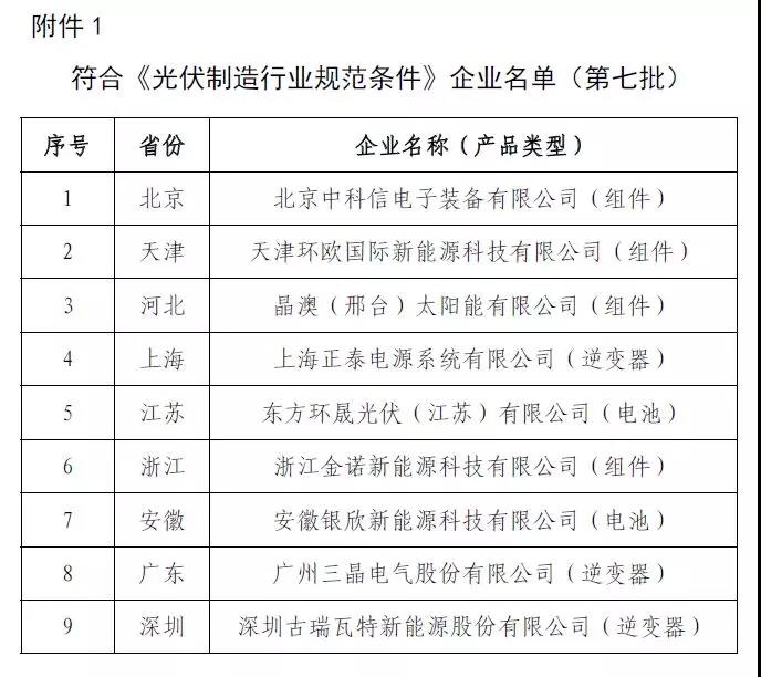 1、符合《光伏制造行業規范條件》企業名單(第七批)