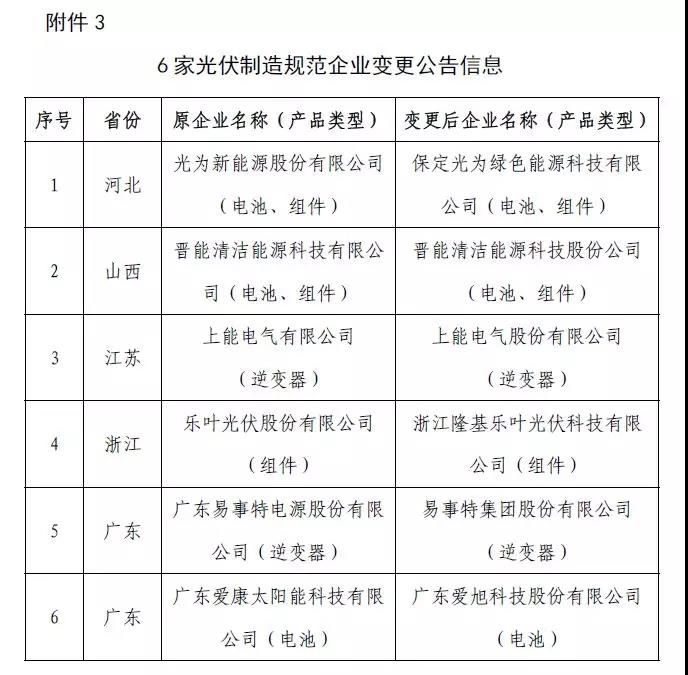 按照《國務院關于促進光伏產業健康發展的若干意見》(國發〔2013〕24號)的要求,根據《光伏制造行業規范條件(2018年本)》及《光伏制造行業規范公告管理暫行辦法》,經企業申報、省級工業和信息化管理部門核實推薦、專家復核、現場核實、網上公示等環節,現將符合《光伏制造行業規范條件》企業名單(第七批)、撤銷光伏制造行業規范公告企業名單(第二批)、6家光伏制造規范企業變更公告信息予以公告。