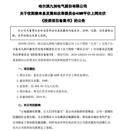灌云縣光伏高效平價上網基地規劃總規模700MW,用地約2.3萬畝,基地選址主要位于灌云縣灌西鹽場、洋橋農場等東部地區。附近有220KV變電站2座、500KV變電站1座,電力接入良好。據中國氣象局風能太陽能資源中心評估結果,灌云縣太陽能資源屬于江蘇省內最佳,基地利用的土地為廢棄鹽田、沿海灘涂、中低產田,在土地成本方面優勢明顯。今年以來,國家光伏發電政策發生較大調整,灌云縣根據光伏領跑者第三批項目的申報和實施情況,實現統一規劃,優勢資源整合,將項目區域打造成集光伏電站建設、光伏先進技術示范、特色水產品養殖、特色漁業休閑旅游為一體的綜合開發基地,實現經濟效益、社會效益、環境效益的全面提升。這次簽約的光伏高效平價上網基地項目總投資達30億元,對于進一步壯大灌云新能源產業,提升產業層次,加快經濟轉型升級必將發揮重要的引領、示范和輻射作用。左軍表示,灌云縣委、縣政府將把這一項目列入全縣重點推進項目,全力支持、配合和服務好項目推進實施,確保實現更高層次的互利共贏。希望隆基清潔能源能夠盡快啟動項目建設,共同把光伏新能源項目建設成灌云新能源產業發展的新標桿。5、泰來縣九洲立新40MW光伏平價上網發電項目。