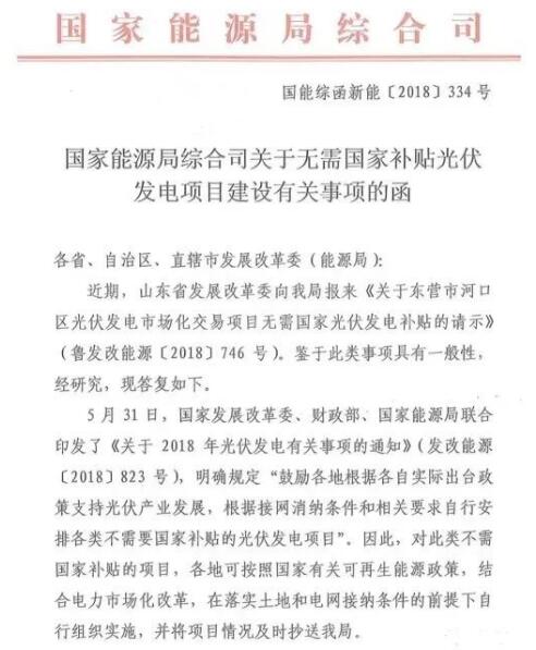 6、山東東營光伏無補貼光伏發電項目8月30日,國家能源局綜合司下發了《關于無需國家補貼光伏發電項目建設有關事項的函》,批準山東省東營市河口區針對無需國家補貼的光伏發電項目開展市場化交易工作。這也是國家發改委、國家能源局和財政部在聯合發布531新政起,全國首個國家批復的無補貼光伏發電項目。