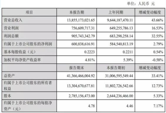 中環(huán)股份業(yè)績(jī)簡(jiǎn)報(bào)顯示,2018年,公司實(shí)現(xiàn)營業(yè)總收入138.55億元,較上年同期同比增長43.66%;營業(yè)利潤7.57億元,同比增長16.53%;實(shí)現(xiàn)歸屬于上市公司股東的凈利潤6.01億元,較上年同期同比增長2.79%;基本每股收益0.2223元,同比增長0.54%。具體財(cái)務(wù)指標(biāo)如下: