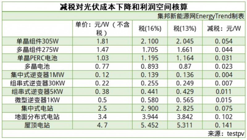 分析:通過減稅,能為光伏產品帶來的實際成本下降和利潤空間計算如下: