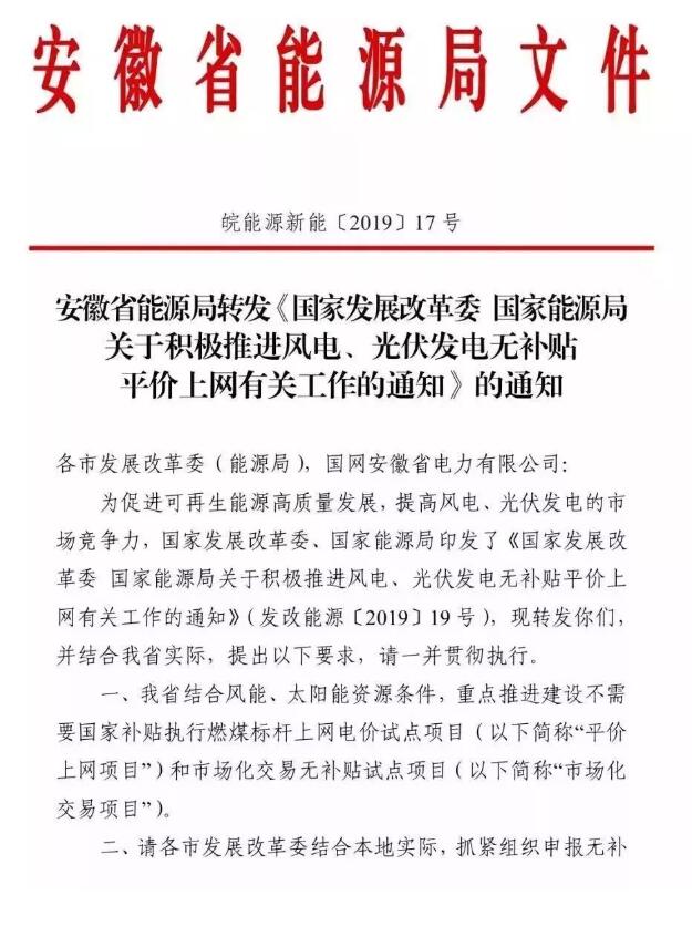 三、安徽:3月20日前上報光伏發電平價上網試點項目
