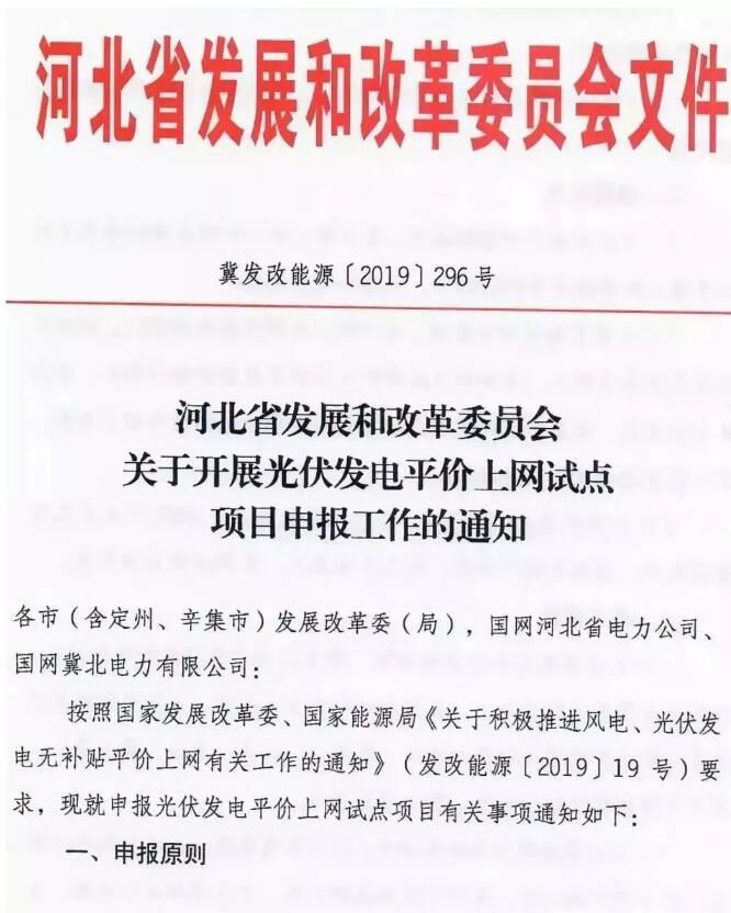 四、河北:3月31日前上報光伏發電平價上網試點項目