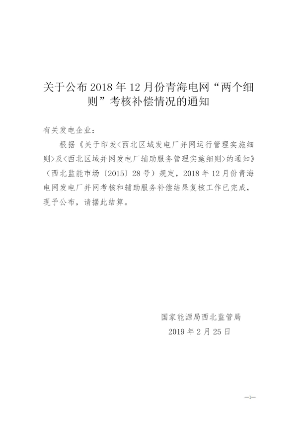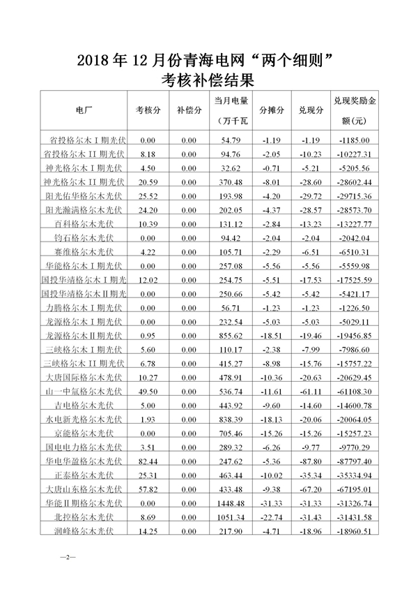 附件:關(guān)于公布2018年12月份青海電網(wǎng)“兩個(gè)細(xì)則”考核補(bǔ)償情況的通知