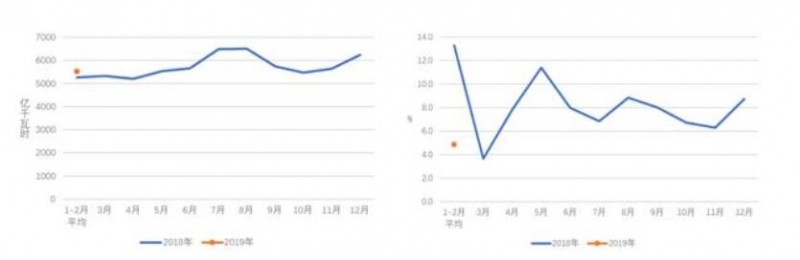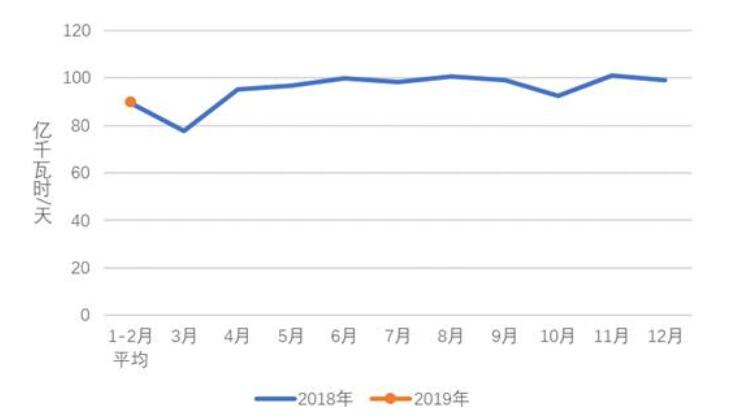 圖2 2018、2019年分月制造業(yè)日均用電量