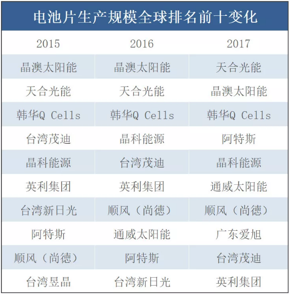 在光伏產(chǎn)業(yè)的中游,組件與電池片環(huán)節(jié)技術(shù)升級和降價速度較快。技術(shù)往往掌握在一線大廠的手中,技術(shù)成熟度及產(chǎn)能規(guī)模都是二、三線廠家難以超越的,雖然排名存在波動,但多是業(yè)內(nèi)知名企業(yè)掌握核心技術(shù)和成本優(yōu)勢。也因此這一環(huán)節(jié)的“隱形冠軍”最不明顯,下附近年來組件、電池片的企業(yè)排名及變化。