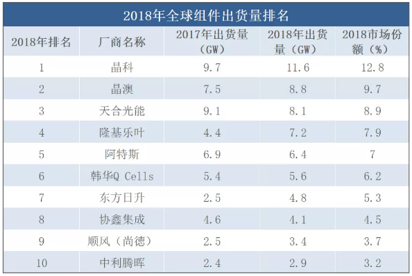 相關(guān)數(shù)據(jù)顯示,2018年全年硅片產(chǎn)量109.2GW,同比增長19.1%。此前業(yè)內(nèi)統(tǒng)計,全球前十硅片制造商為協(xié)鑫、隆基、中環(huán)、晶科、賽維、旭陽雷迪、綠能科技、英利、昱輝、晶澳。