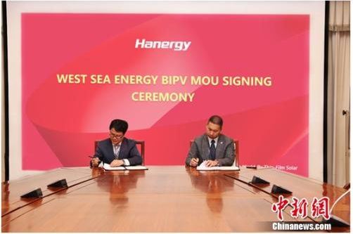 圖:漢能與韓國West Sea Energy在北京舉行簽約儀式