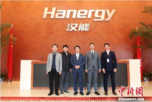 圖:韓國West Sea Energy首席運營官Yoo Young Yong、首席財務官Shin Si Jeo、韓國退伍軍人協會會長Park Chan Yong一行人到訪漢能總部