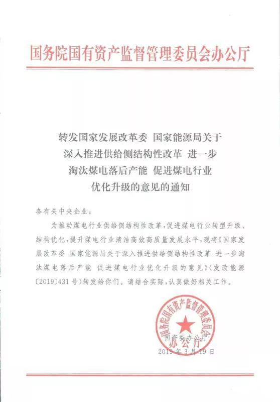 3月19日,國資委轉發了國家發改委、國家能源局的《關于深入推進供給側結構性改革進一步淘汰煤電落后產能 促進煤電行業優化升級的意見》,提出了六類需要淘汰關停的煤電項目。