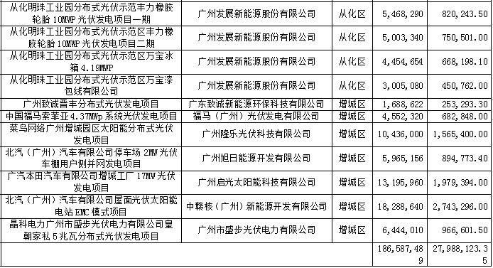 4月3日,廣州發改委發布了關于下達2019年(第一批)太陽能光伏發電項目補貼資金(直接支付部分)安排計劃的通知,共計33個項目,補貼資金27,988,123.35元。
