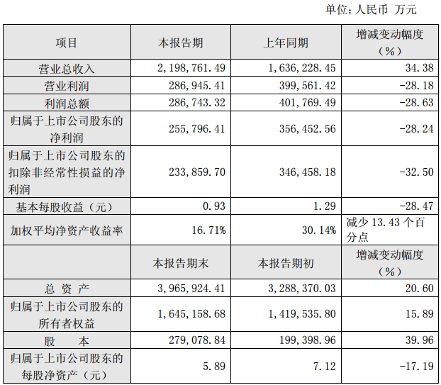 今日,隆基股份發布2018業績報告顯示,報告期內,公司實現營業收入2,198,761.49萬元,同比增加34.38%;實現歸屬于母公司的凈利潤255,796.41萬元,同比下降28.24%;基本每股收益0.93元,同比下降28.47%;加權平均凈資產收益率16.71%,同比減少13.43個百分點。報告期末,公司財務狀況良好,總資產3,965,924.41萬元,較上年期末增加20.60%;歸屬于上市公司股東的所有者權益1,645,158.68萬元,較上年期末增加15.89%。