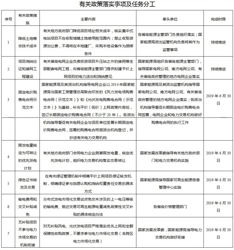 其次,“方案”要求各地區協同落實平價上網政策措施。在附件的“有關落實事項及任務分工”中,明確要“降低土地等非技術成本”、同時為了減輕企業負擔,規定電網企業負責項目升壓站之外的接網等全部配套電網工程;此外還對相關項目的售電合同進行規定,最大程度確保項目20年以上的電量收購、并保證平價上網項目不需要參加電力市場交易。這些利好政策都進行了詳細的歸責,并注明了完成時限。這一切都表明,這次發改委和能源局是“來真的”。