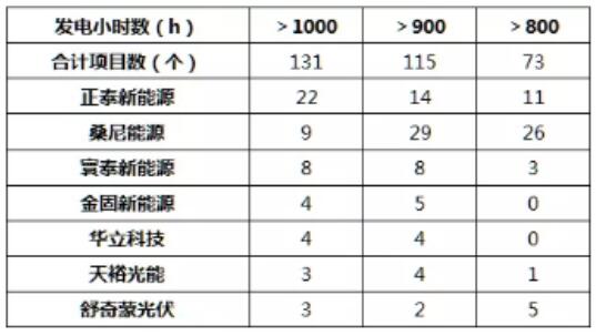 此外,年發電小時在900小時以上的項目中,華立科技、金固新能源和天裕光能分別有9個、8個和7個項目。