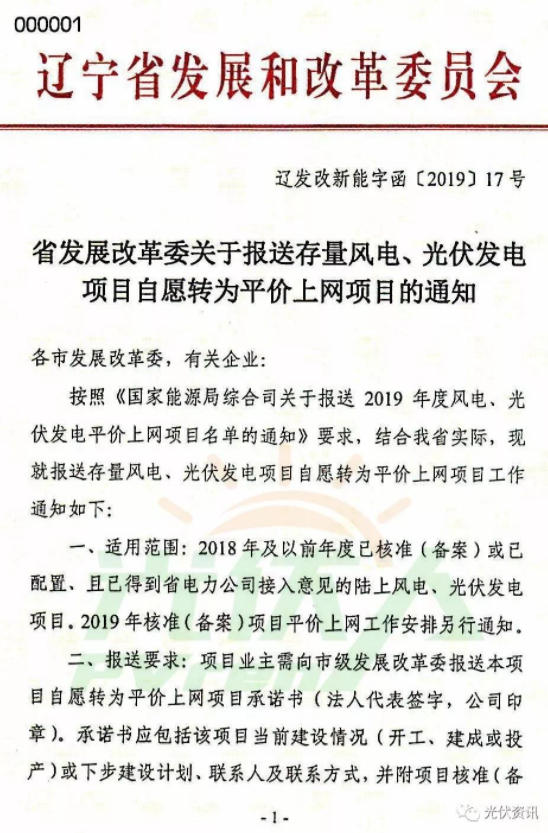 遼寧發(fā)改委:所有普通光伏項(xiàng)目開工前均需承諾上網(wǎng)電價(jià)意愿