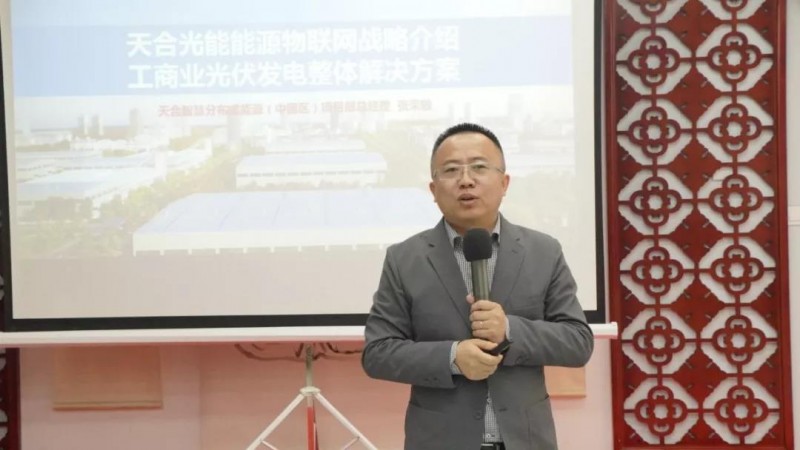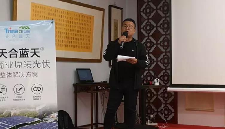 天合智慧分布式能源有限公司常務副總裁徐勁松、天合智慧分布式能源有限公司商用項目部中國區總經理張榮敏、天合智慧分布式能源有限公司商務總監蘇建廣攜手部分天合藍天用戶代表出席本次會議。