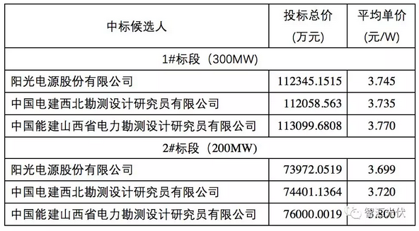 在這樣的技術要求及工程任務范圍內,格爾木500MW項目的EPC投標價格如下表所示。