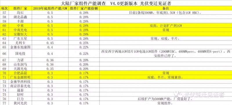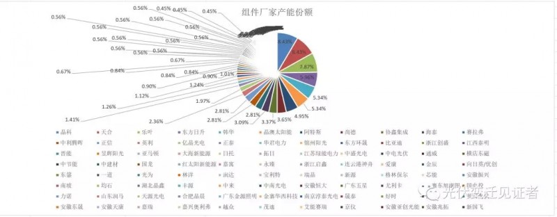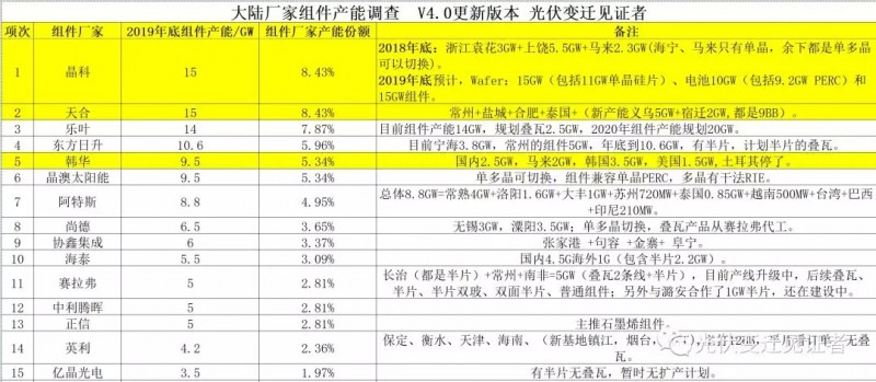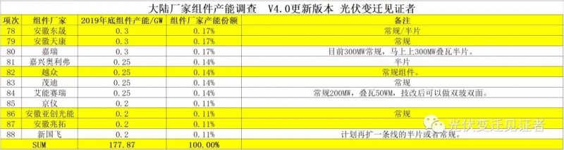 大陸組件產能累計177.87GW,晶科、天合、隆基、東方日升、韓華排名前五。
