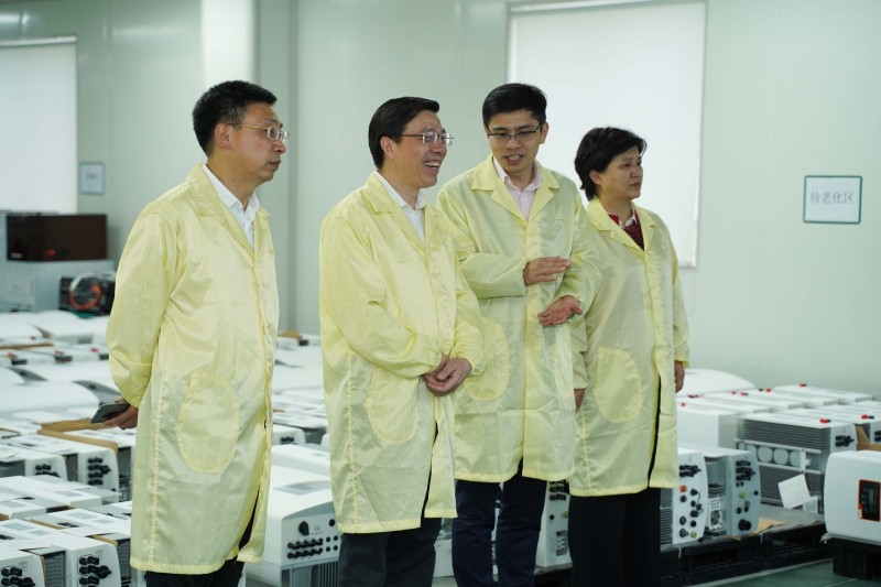 作為此行唯一被調研的高新技術企業 ——寧波錦浪新能源科技股份有限公司,黃局長一行抵達錦浪科技后,與企業董事長王一鳴親切交談,深入了解了企業發展情況。當他得知企業從2005年白手起家,到成為分布式光伏發電系統核心設備組串式逆變器研發、生產、銷售和服務的行業領軍企業之一,并在今年初順利實現深交所A股上市表示祝賀,對王一鳴作為象山本土的“國家千人計劃”海歸人才回報家鄉、勇于創業精神表示欽佩,希望象山縣多挖掘培育這樣的創新型領軍企業。