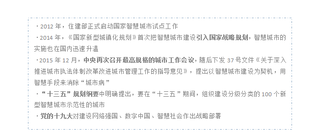 改革開放以來,中國經(jīng)濟(jì)迅速騰飛發(fā)展,隨之而來的城市集聚效應(yīng)已非常明顯。為解決城市公共交通、資源環(huán)境、城市居民醫(yī)療、城市安全與管理、人口老齡化等帶來的種種問題,實現(xiàn)城市可持續(xù)發(fā)展,建設(shè)智慧城市已成為當(dāng)今城市發(fā)展的趨勢。