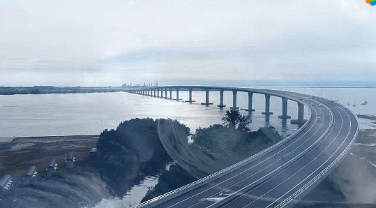 文萊灣上,大摩拉島跨海大橋將島嶼和陸地連接在一起。