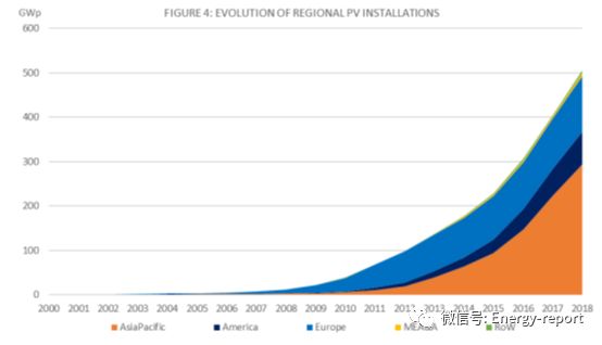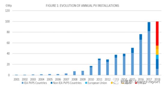 總體而言,全球光伏市場幾乎達到了1億千瓦的大關。如果中國的市場水平與此類似,那么這一增幅將遠遠高于2017年的安裝水平。2018年,中國境外市場的增長超過17%,而2017年為15%。