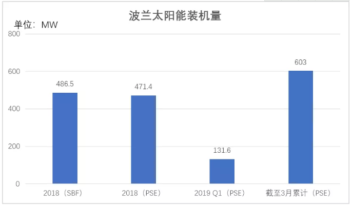 根據波蘭可再生能源協會SEO統計,2019年一季度,波蘭新增太陽能裝機為131.6MW,截至3月31日,波蘭累計裝機達603MW。根據此前波蘭國家電力公司PSE的報道,2018年公共事業規模的裝機量為471.4MW。波蘭光伏行業協會SBF和GLOBEnergia公布數字為截至2018年底的累計裝機量為486.5MW。