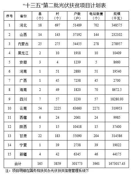 關(guān)于分解下達(dá)“十三五”第二批光伏扶貧項目計劃的通知
