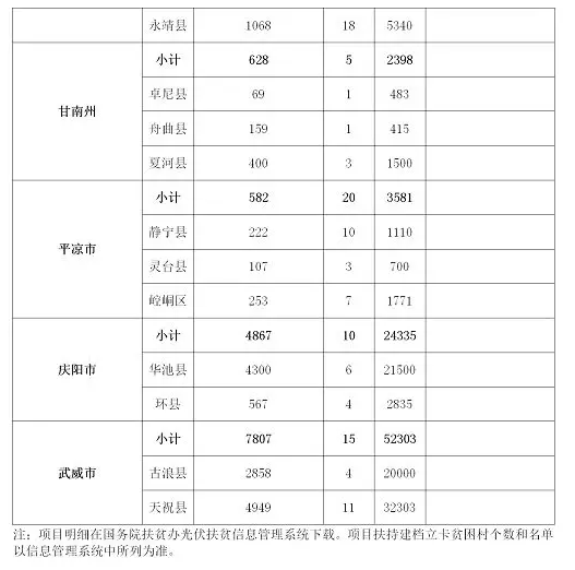 一、經(jīng)國家能源局、國務(wù)院扶貧辦審定,本批下達(dá)22個縣(區(qū))村級光伏扶貧電站項目204個,總規(guī)模314586千瓦,幫扶對象為55090戶建檔立卡貧困戶(詳見附件)。2018年9月省發(fā)展改革委、省扶貧辦以甘發(fā)改能源〔2018〕701號文向定西市渭源縣、武威市古浪縣和天祝縣調(diào)整指標(biāo)納入本批項目計劃實施。